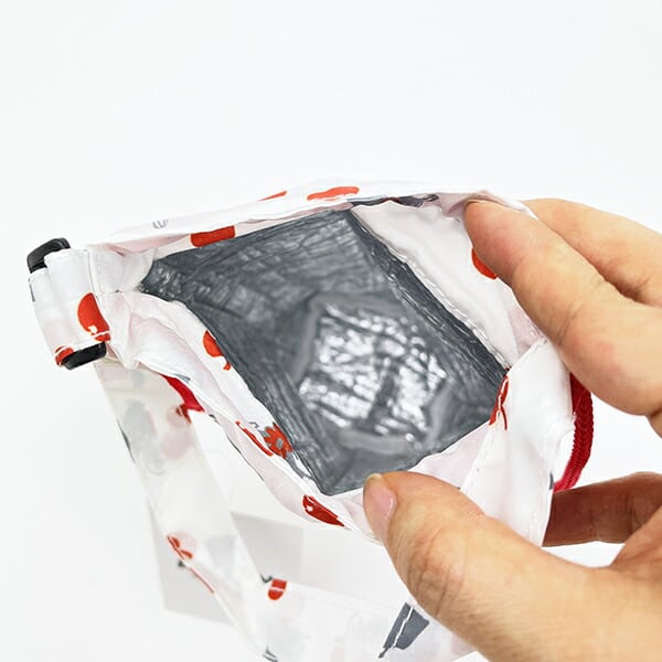 内側はアルミ蒸着素材で、飲み物の冷たさや温かさをしっかりキープ!持ち手の片側はスナップボタンで取り外しOKで、バッグやリュックにぶら下げて持ち歩けて便利◎通勤・通学はもちろん、お出かけやレジャーにもぴったりです♪
