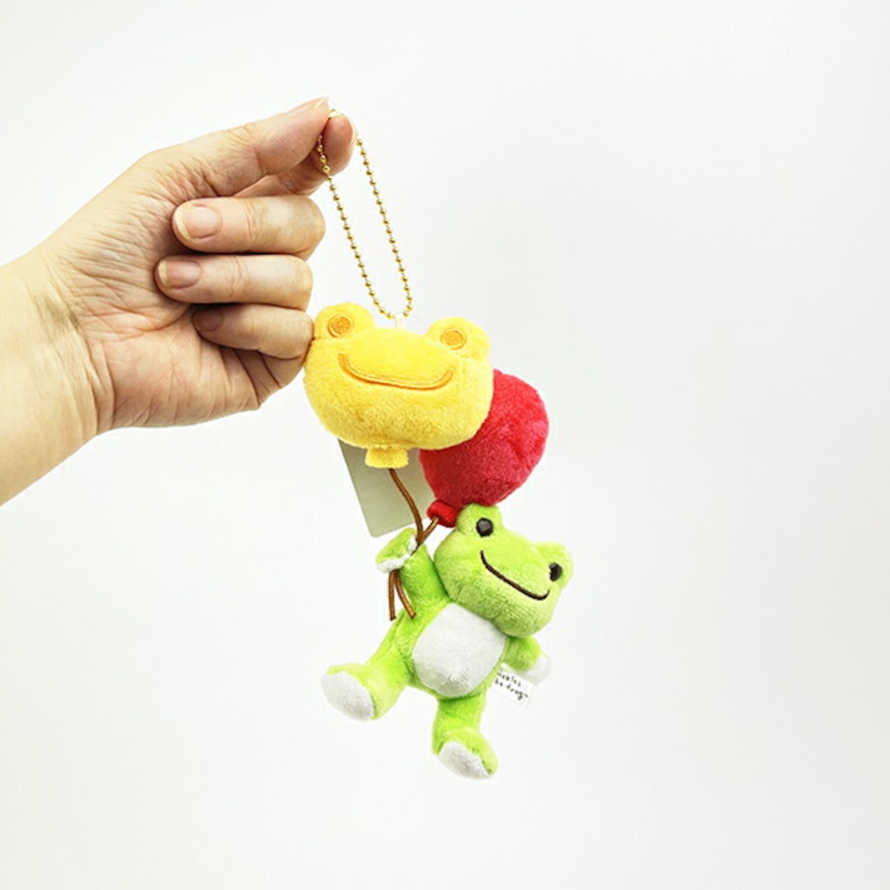 風船につかまって空を飛ぶ、ピクルスがとってもキュートなマスコット♪ピクルスの顔型風船と赤い風船がカラフルで、見ているだけで気分もアップ!!ボールチェーン付きで、カバンやリュックに付けてお出かけにもぴったりです♪