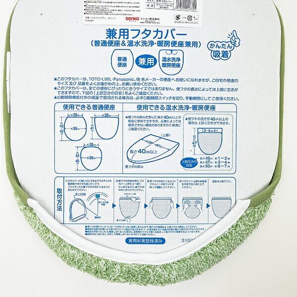 となりのトトロの兼用蓋カバー。タイプにかかわらず使っていただける吸着シート付きです(一部、お使いになれない便器がございます)。ゆったりとした森の中でくつろぐような優しいグリーンカラーの中にトトロの立体的な可愛いアップリケがアクセントに♪