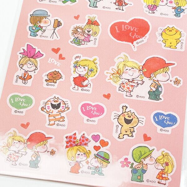 水森亜土の可愛らしいカップルデザインがキュートなマスキング素材のシールです。貼ってはがせるのでスマホやノートなどのデコレーションにも◎どのデザインも可愛すぎて亜土ちゃん好きにはたまりません!シール帳に貼ってコレクションするのもおすすめです☆彡