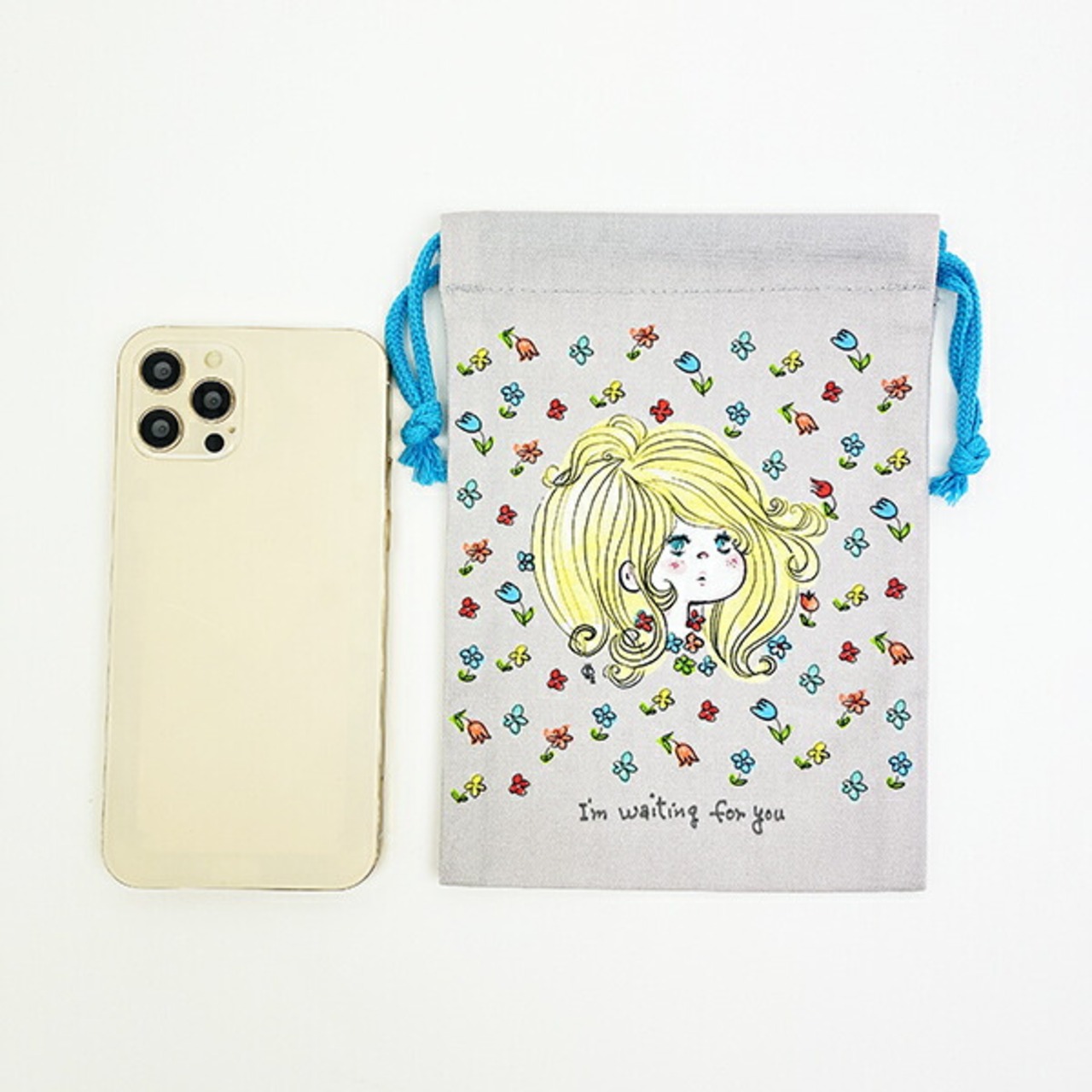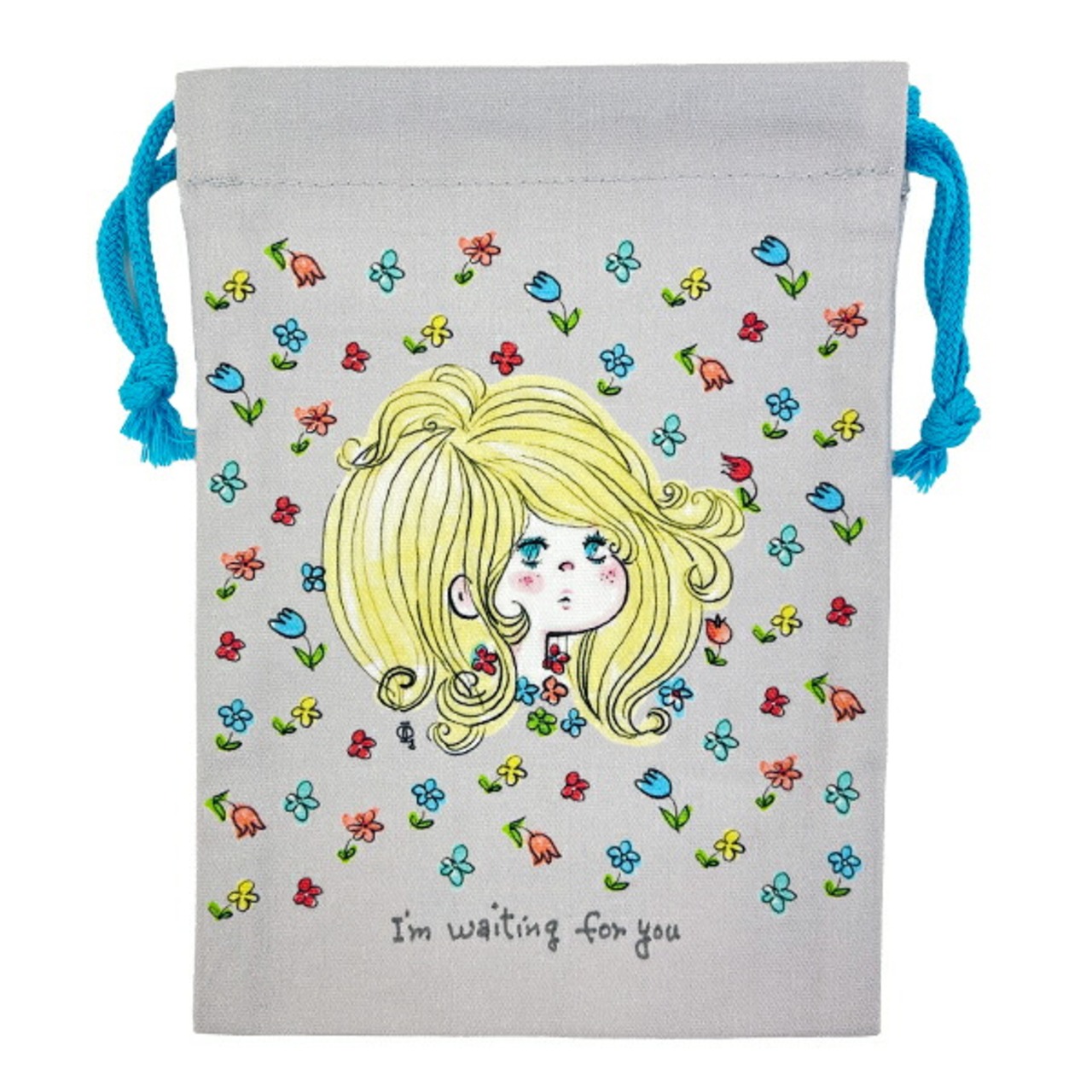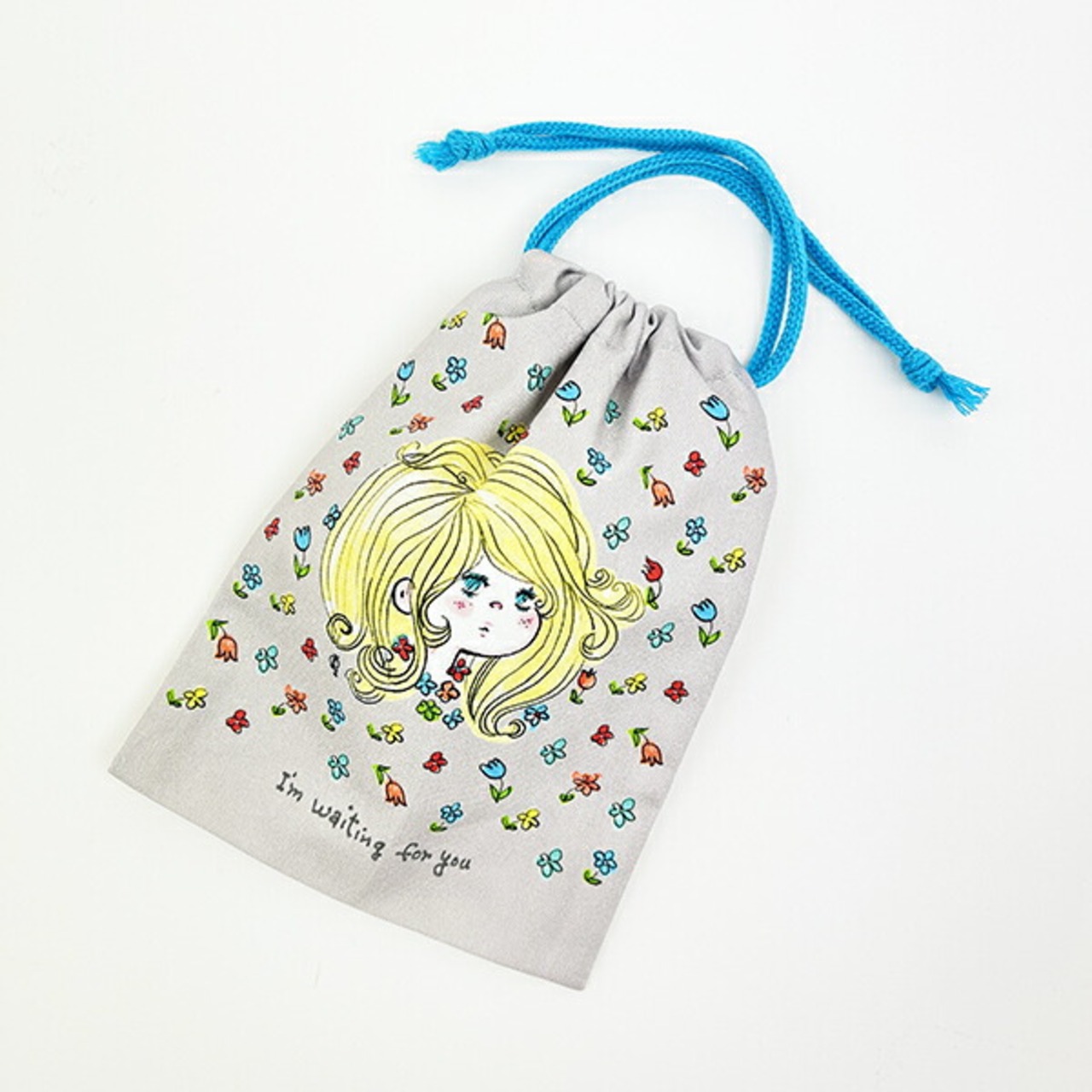 小さめなのでメイク直し用品や小物を入れるのにぴったりな水森亜土の巾着です。亜土ちゃんらしい可愛い女の子デザイン♪ひもの色もアクセントになっています!お花がたくさん飛んでいてとってもキュートです☆彡