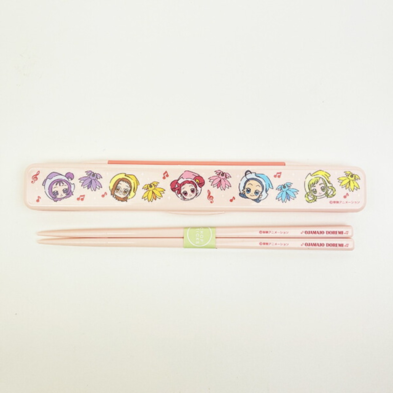 カチャカチャ鳴らないおジャ魔女どれみの箸・箸箱セットです♪クッションがしっかり箸を押さえ、上下左右に揺れないので音がなりません♪可愛いデザインにランチ時でも楽しく過ごせますよ♪【箸のサイズ:18cm】