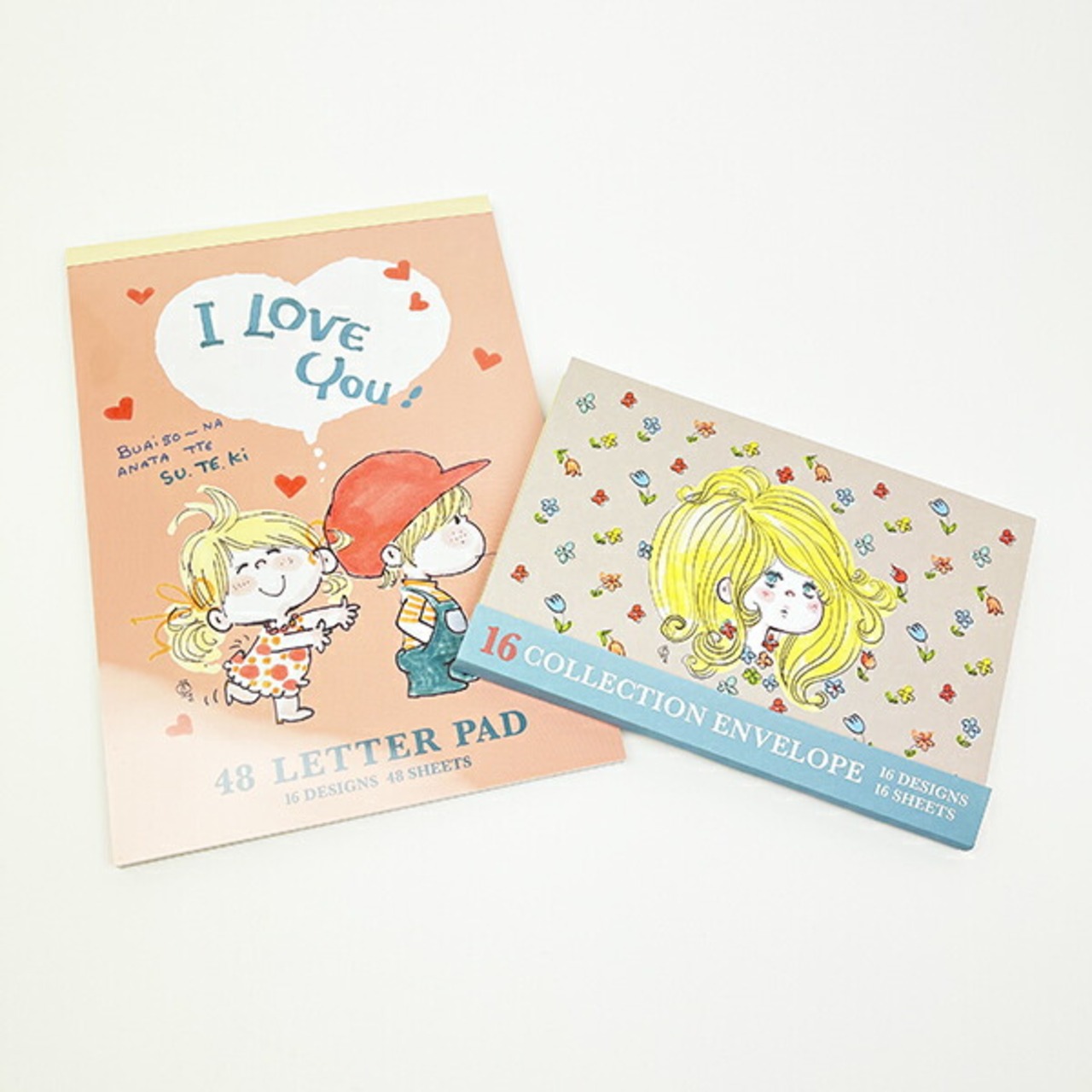 水森亜土のレターパッドです。表紙は亜土ちゃんらしい可愛いカップルデザイン♪48シートあるのでお手紙やメモ書きなどたくさん使えます!16デザインもあるので亜土ちゃん好きの方にはたまりません☆彡
