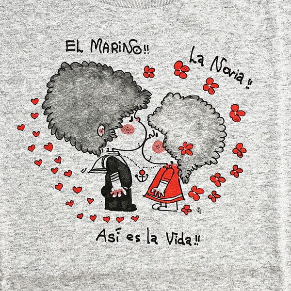 マリン風のカップルがデザインされた可愛い水森亜土のTシャツです。綿100%でさらりと着られます。シンプルかつおしゃれなデザインなので普段使いにぴったりです☆彡【サイズ】身丈:70cm×身幅:52cm
