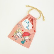 小さめなのでメイク直し用品や小物を入れるのにぴったりな水森亜土の巾着です。亜土ちゃんらしい可愛いカップルデザイン♪ひもの色もアクセントになっています!ハートがたくさん飛んでいてとってもキュートです☆彡