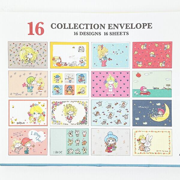 水森亜土の封筒セットです。亜土ちゃんらしい可愛いデザイン♪16デザインもあるので亜土ちゃん好きの方にはたまりません☆ぜひ同デザインのレターパッドと合わせてお使いください♪