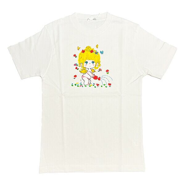 水森亜土 水やり柄 コットン半袖Tシャツ(M) ホワイト アパレル