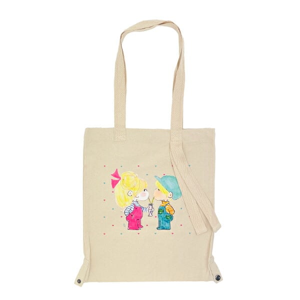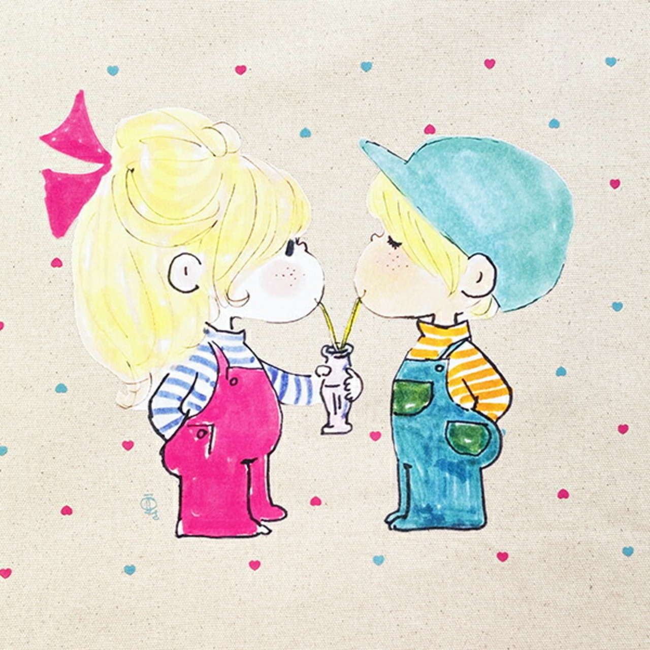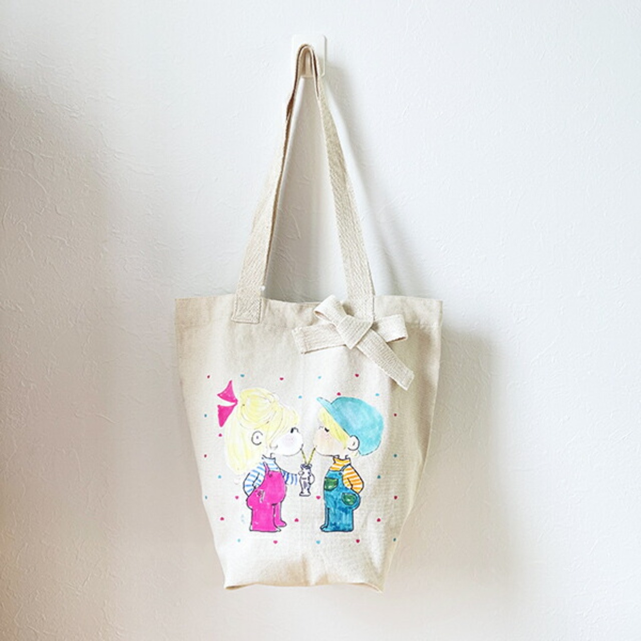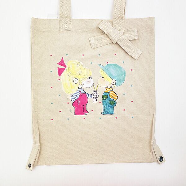 水森亜土の恋人デザインが可愛い2WAYトートバッグです。マグネットボタン付きで安心!内ポケット付きも嬉しいポイント♪気分によって形を変えることができるので飽きずに長くお使いいただけます☆彡