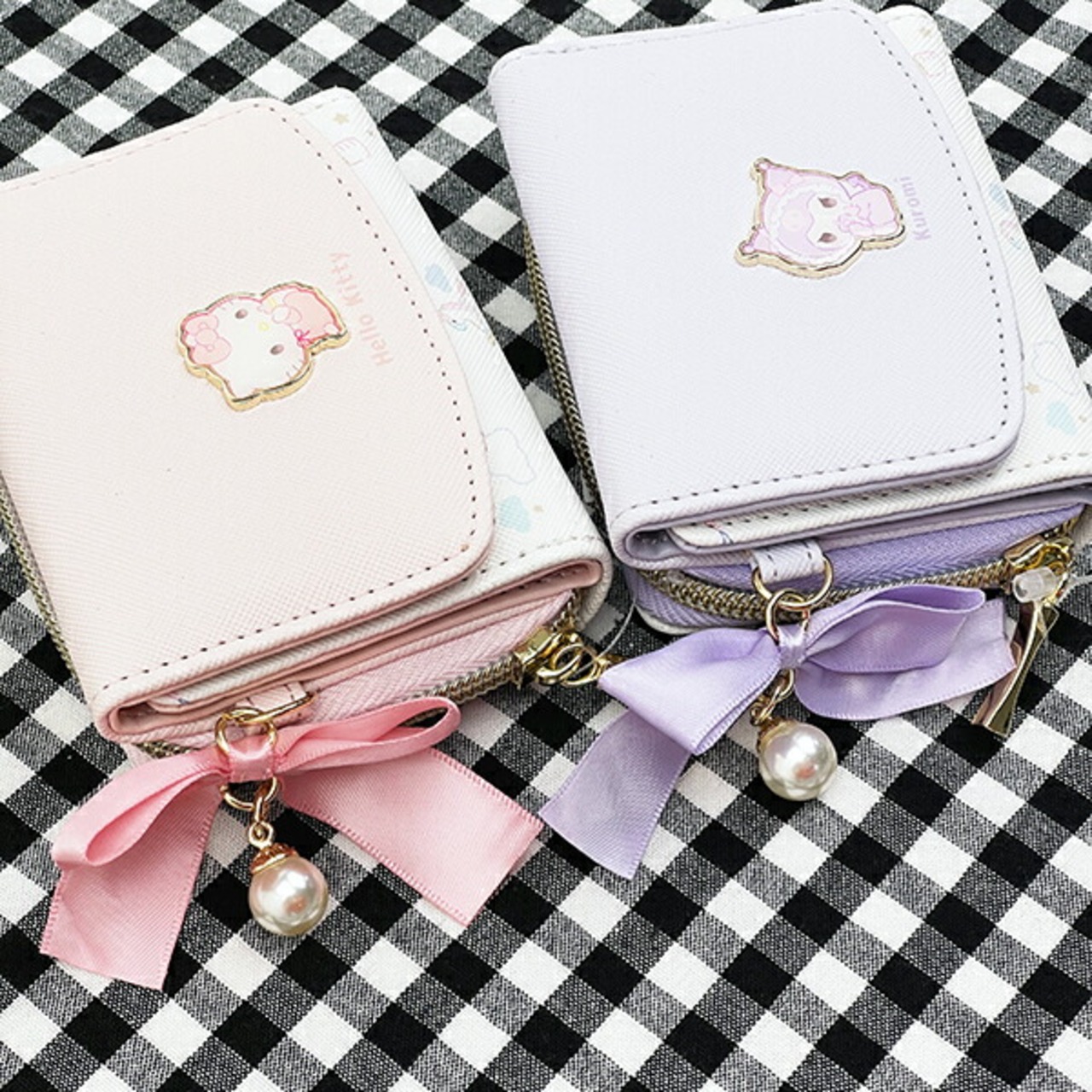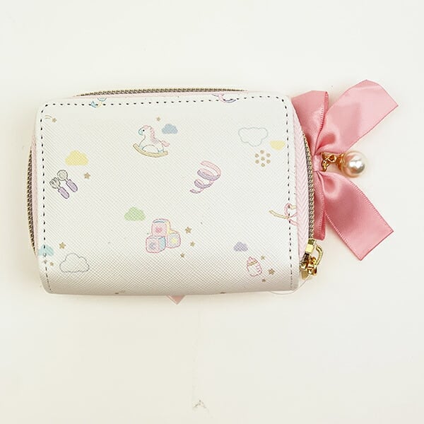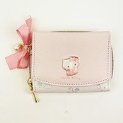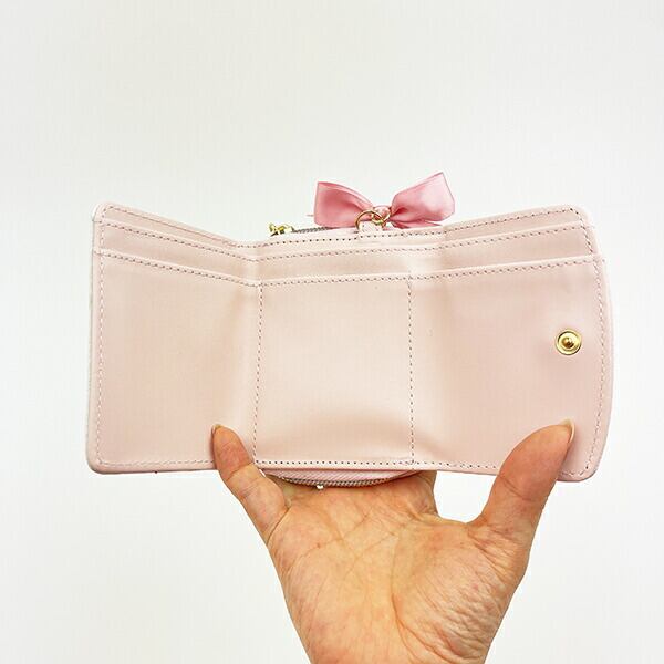 ベビー姿の可愛いキティちゃんの3つ折りお財布です♪大きく開く小銭入れが出し入れしやすく、大人でも小さいお子様でも使いやすい◎大きなサテンリボンがとっても可愛く、お買い物時も気分が上がっちゃうよ♪