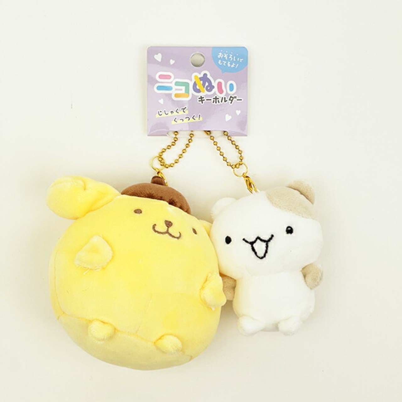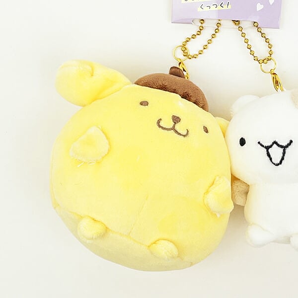 ポムポムプリンとマフィンの仲良しマスコットです!磁石でほっぺがくっつく、おソロキーフォルダーのニコぬい♪バッグにお揃いでつけて仲良しアップ!おしりのしるし*も有り!