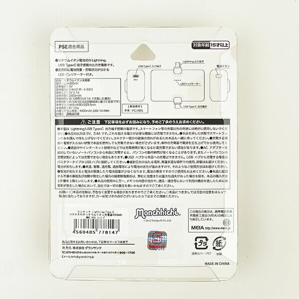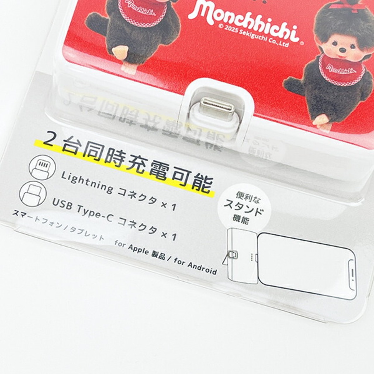 モンチッチ Type-C コネクタ付きリチウムイオン充電器 (レッド) スマホ