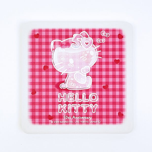 ハローキティ50周年を記念した特別なデザインの角型陶製吸水コースターです。コップの水滴を吸い取ってくれます!オシャレなデザインなのでどんな食卓でも合わせやすい◎ぜひ特別なデザインのアイテムを使ってキティちゃんをお祝いしましょう♪