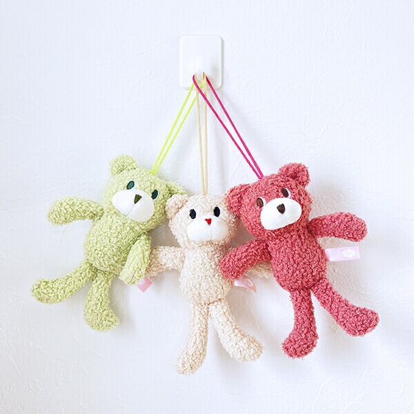 おしゃれなカラーデザインでそれぞれ個性を表現しています。紐もカラーを合わせることでさらに可愛くなりました♪ふわふわの触感に握りやすいボディはお子様にもおススメです!