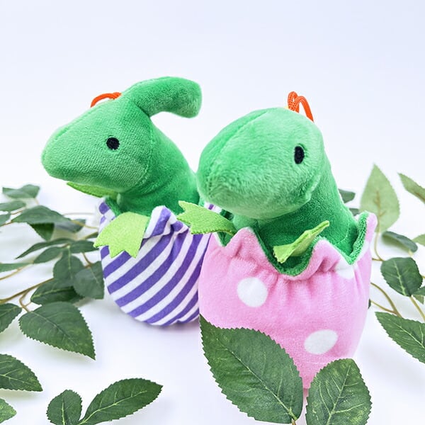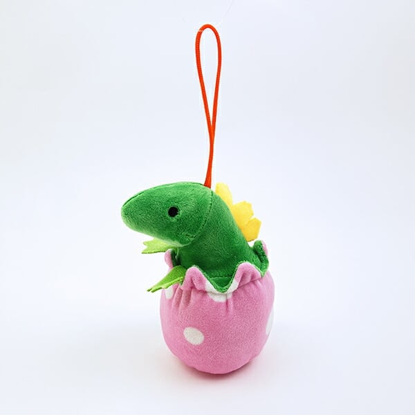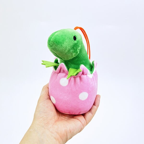 恐竜が好きな方も、ぬいぐるみが好きな方も目を引かれるデザインです♪カワイくデフォルメされていますが、恐竜の特徴を出したデザインになっています。卵がカワイイデザインになっているのもポイント♪ポップなカラーでお子様にもおススメなぬいぐるみです。紐付きなのでバッグに付けても◎