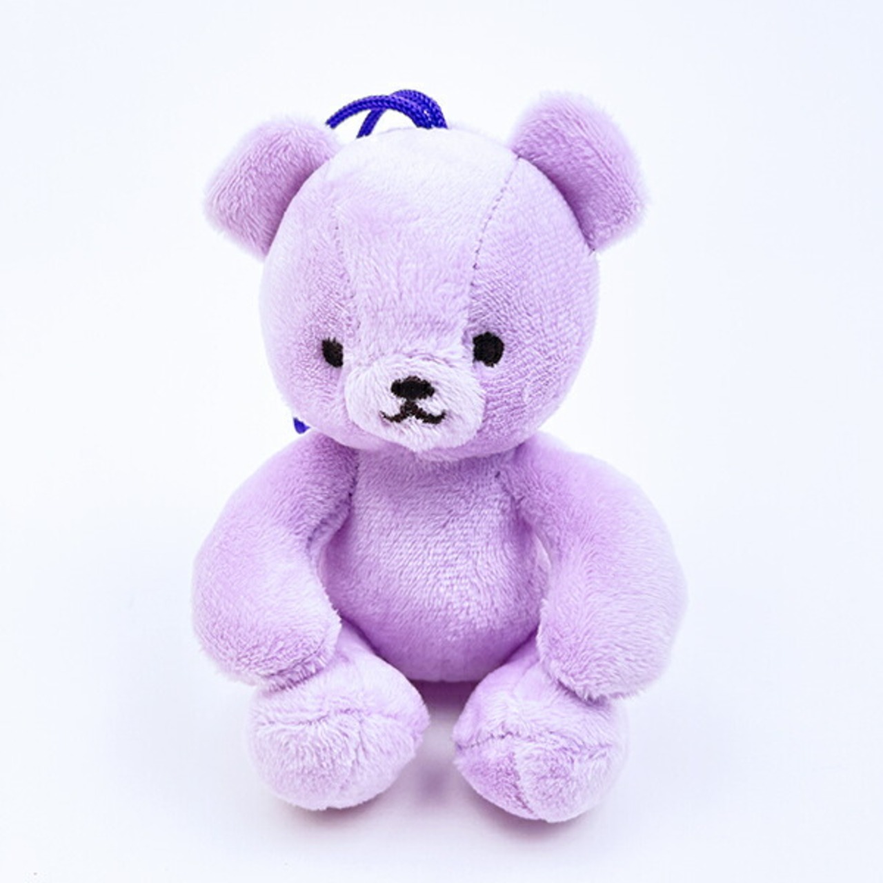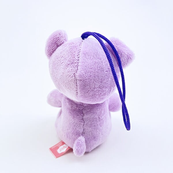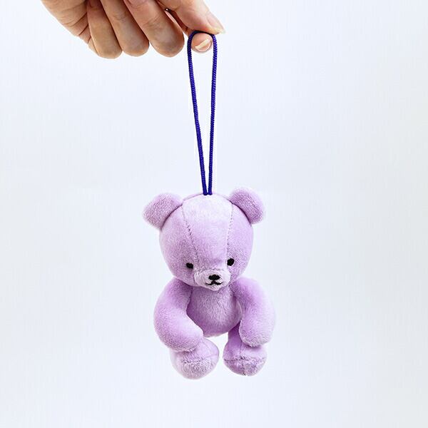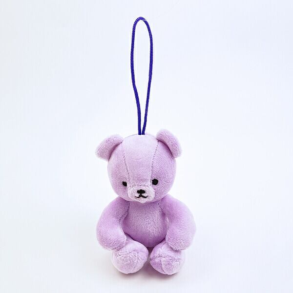 推しハグベアのサラッとタイプです。優しい手触りにすべすべな見た目がカワイイ♪首にヘアゴムをつけて缶バッチをつけると、推しをギュっとしてくれるデザインです。紐があるのでバッグに付けられてうれしい◎