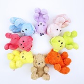 推しハグベアのサラッとタイプです。優しい手触りにすべすべな見た目がカワイイ♪首にヘアゴムをつけて缶バッチをつけると、推しをギュっとしてくれるデザインです。紐があるのでバッグに付けられてうれしい◎