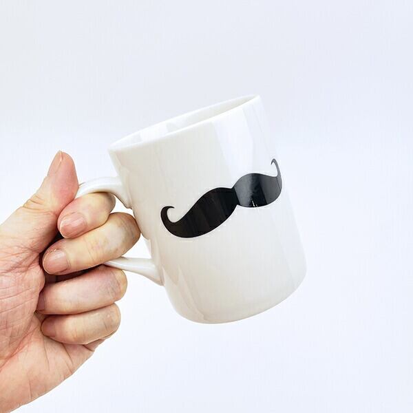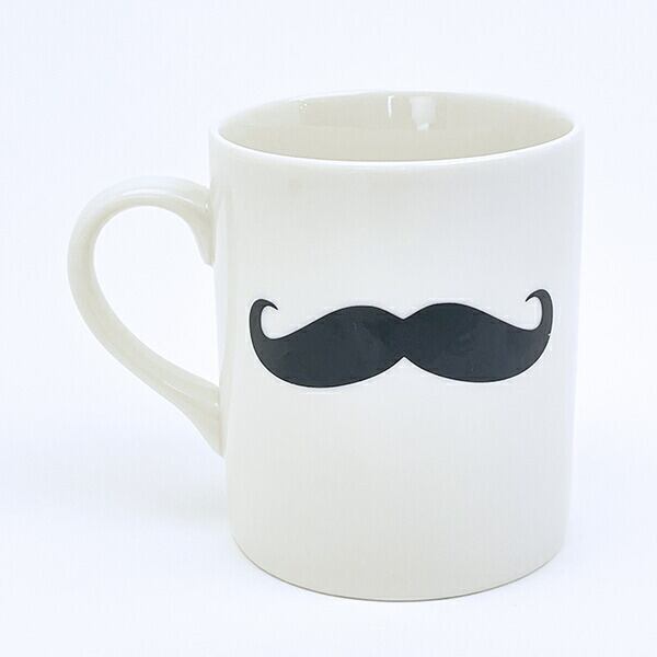 お髭のデザインが入った可愛いらしいジェントルマンのマグカップです。飲み物を飲むときにお髭がお顔にあるように見えちゃう面白いデザイン☆シンプルなデザインなので、どなたでもお使いいただけます♪朝のひとときをぜひこのマグカップでお過ごしください☆彡