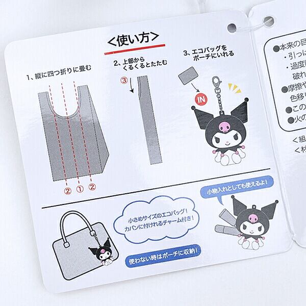 クロミのポーチ付きエコバッグです。存在感あるデザインなのでバッグなどのアクセントにも◎これさえあれば急な買い物でも安心!シリコンポーチなので、玄関などに飾っておいて買い物に行く際にパッと持っていけるのも良いですね☆ぜひお好きなキャラクターで揃えてみてください♪【サイズ】エコバック:45cm×25cm×12cm、ポーチ:14cm×14cm×6cm