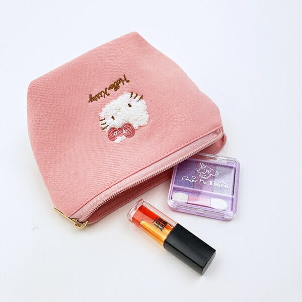 キティちゃんのお顔がもこもこしたポーチです♪ゆるっとしたキティちゃんのお顔が可愛い♪もこもことしたサガラ刺繍がとってもチャーミング♪小物入れやコスメポーチとしてもお使いいただけます♪