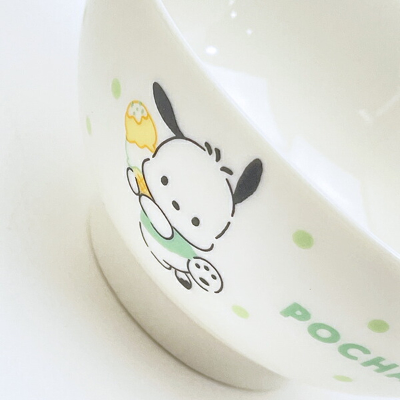 ポチャッコのスイーツ柄×ドット柄が可愛いデザインのお茶碗です。サンリオ好きにはたまりません☆キュートなデザインなのでお子様用にも◎ぜひ同シリーズのマグカップと合わせてお使いください♪食洗機・電子レンジ使用可◎