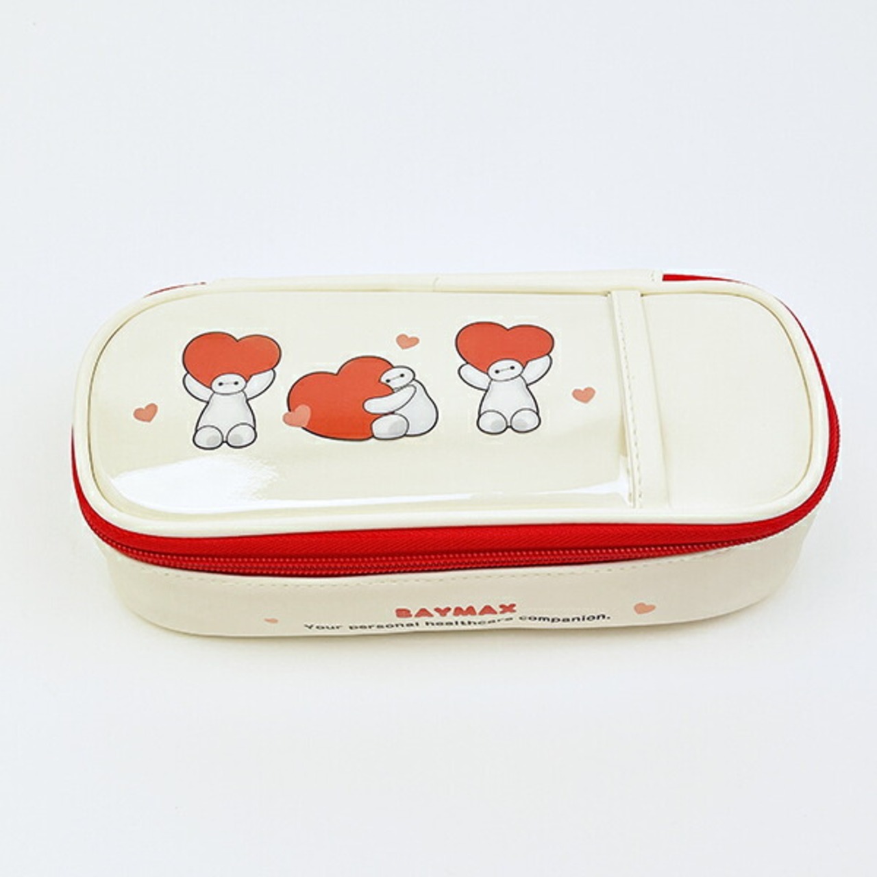 大きく開いて使えるBOX型で文房具や小物がたっぷり入ります!天面にはPVCのポケット付きで便利♪内側には小物の収納に便利なメッシュポケット付き。ファスナーの持ち手にはキャラクターのチャーム付きでカワイイ♪