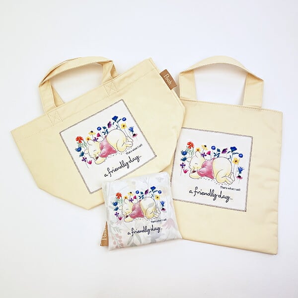 くまのプーさんのシンプルなデザインで使いやすいミニトートバッグです。プーさんとお花たちがデザインがとってもキュート♪デイリー使いにぴったりなサイズ感☆内生地まで可愛いのが嬉しいポイント!じゅわっとした優しいカラーで大人でも使いやすいバッグです☆彡