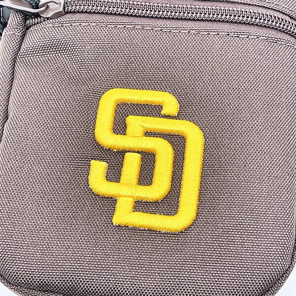 MLBの人気チーム(パドレス)のミニショルダーバッグです。ショルダー部分のロゴデザインがオシャレ♪表面(裏表)に便利な収納ポケット付きが嬉しいポイント☆スマホとお財布が一緒に入れられる大きさです!MLBや野球好きの方にぴったりなアイテムです☆
