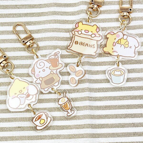 マフィンコーナーとは、中国から来たマフィンカフェの住人達です。食べることが大好きで、それぞれ個性のある優しいキャラクターになっています。キャラクターと美味しそうなコーヒーモチーフの2連キーホルダーです。ゆらゆら揺れてカワイイ♪フック部分も付けやすいデザインで、バッグに付けやすくて嬉しい!