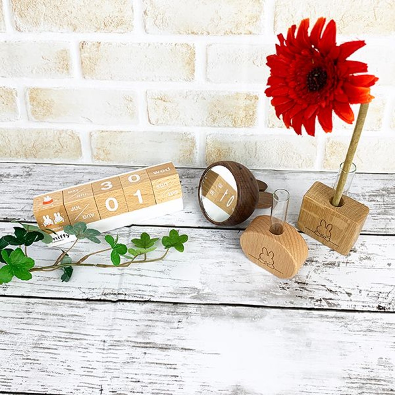 ミッフィーのナチュラルな木の質感がやさしいグリーンインテリアです。オーク材の上品な雰囲気が心地よい手のひらサイズの一輪挿し♪ナチュラルなデザインなのでどんな方でもお使いしやすいアイテムです☆彡