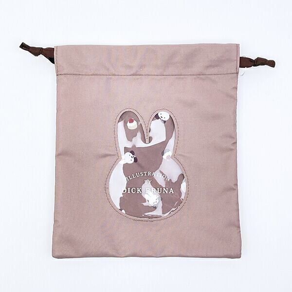 ミッフィーのフルーツ柄、巾着です♪大人女子のくすみカラー♪巾着の裏地もミッフィーのフルーツ柄で、とってもキュート♪外側にクリアのミッフィーの可愛い顔があるため、巾着の中身が見えて使いやすい☆彡