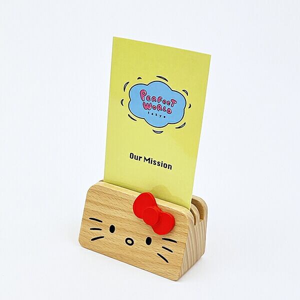 ハローキティのデスク周りに置きやすいコンパクトさと、リボンがポイントのメモスタンドです。異なる幅の2つのスリットが入っているので、カードや名刺、メモなどを用途に合わせて挟むことができちゃいます♪ナチュラルなデザインなのでどんな方でもお使いしやすいアイテムです☆彡