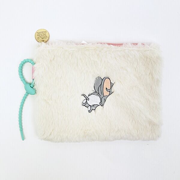 ふわふわの毛並みに顔をうずめるキャラクターが可愛いトムとジェリー(タフィー)のファーポーチです。大き目のフラットポーチなので、ペンケースや化粧ポーチなど色んな用途で使えて便利☆チャームなどをつけられるパーツ付きが嬉しいポイント♪ぜひ同シリーズのトートバッグと合わせてお使いください☆彡