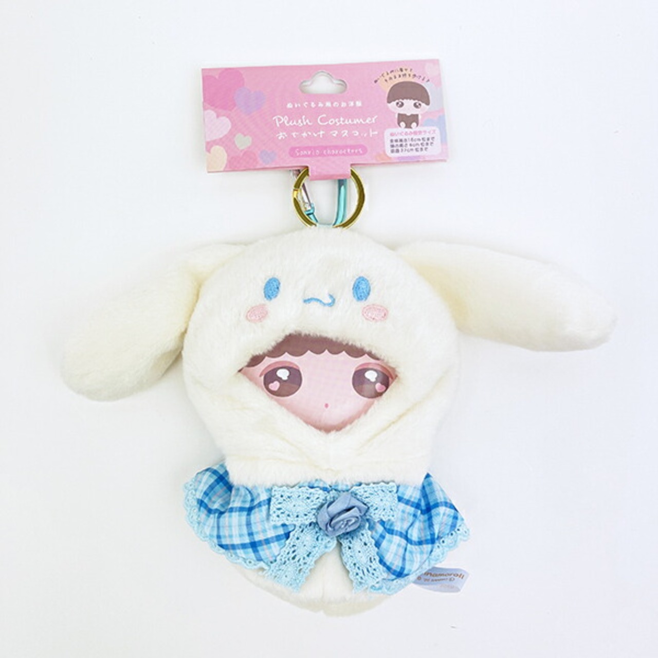 シナモロールのプラッシュコスチューマーおでかけマスコットです。頭が大きいぬいぐるみにぴったり☆ぬいぐるみに着せてそのまま持ち歩けます♪ころんと可愛い姿になるのでぜひお気に入りのぬいぐるみや推しのぬいぐるみをサンリオキャラクターに変身させて楽しんでみてください☆彡【着せ付け可能なぬいぐるみサイズ】全体高さ:16cm位まで、頭の高さ:6cm位まで、頭囲:27cm位まで