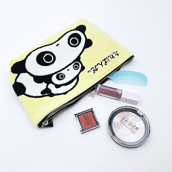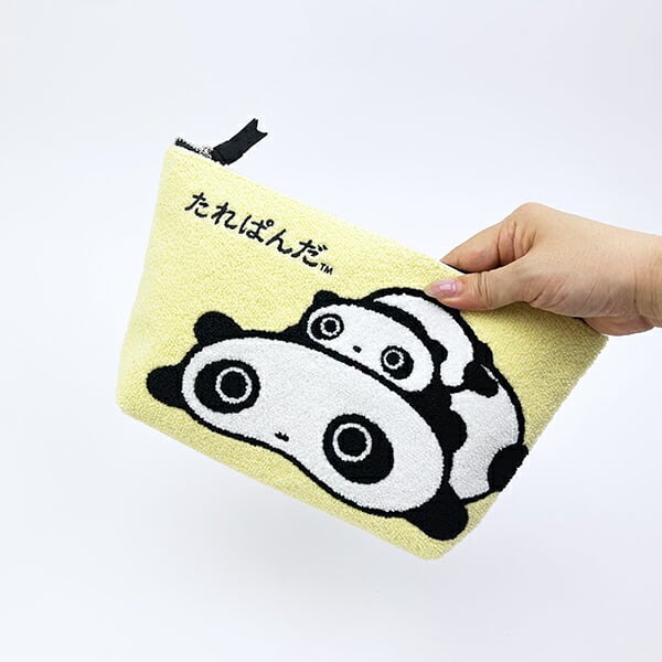 たれぱんだは今日もよくたれています。好物はすあま。時速2.75m/h。気がつくとそばにいます。名前の通り、独特のたれたポーズとゆるやかな動きが、一度見たら忘れられない個性を表現しています♪コスメや小物を入れるのにぴったりなポーチ◎モコモコした刺?が特徴的♪