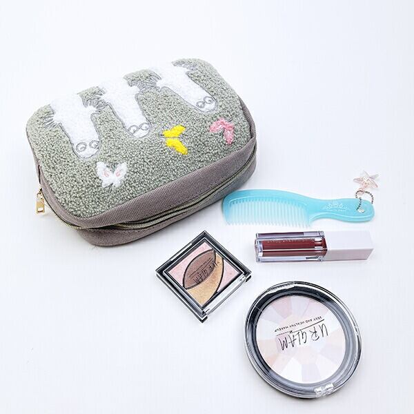 ムーミン(ニョロニョロ)のふわふわのサガラ刺繍が可愛いポーチです。メイク用品や小物を入れるのにぴったりなサイズ感☆内生地まで可愛いのが嬉しいポイント♪しっかりしたポーチなので普段使いにぴったりです☆彡