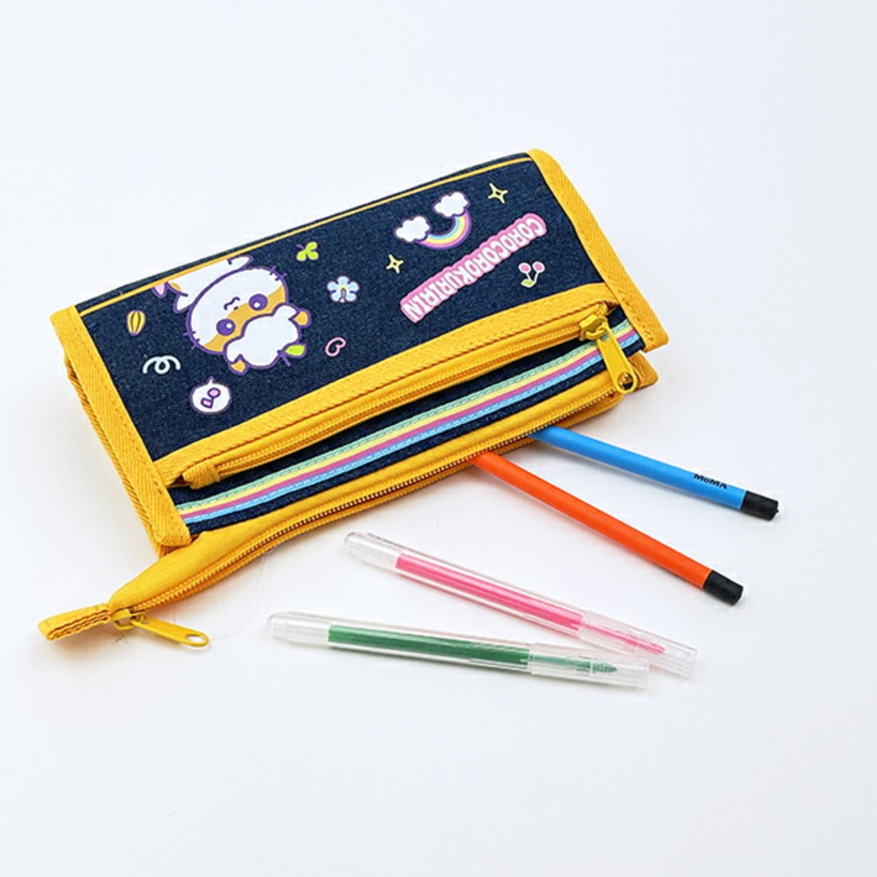 コロコロクリリンのデニムポーチです。Y2Kテイストの懐かしくてかわいいデザインにキュンとしちゃいます♪ポーチとしてはもちろん、ペンケースとしても使えます☆持っているだけで気分が上がりそうな可愛いデザインなのでぜひお好きなキャラクターをお迎えしてあげてください♪