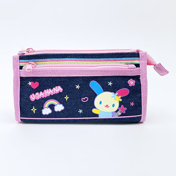 ウサハナのデニムポーチです。Y2Kテイストの懐かしくてかわいいデザインにキュンとしちゃいます♪ポーチとしてはもちろん、ペンケースとしても使えます☆持っているだけで気分が上がりそうな可愛いデザインなのでぜひお好きなキャラクターをお迎えしてあげてください♪