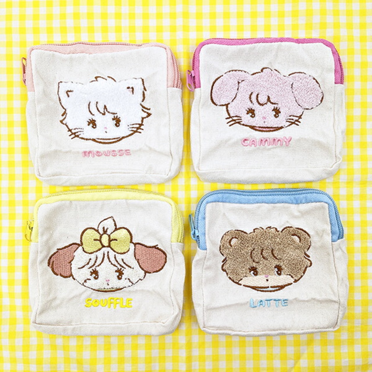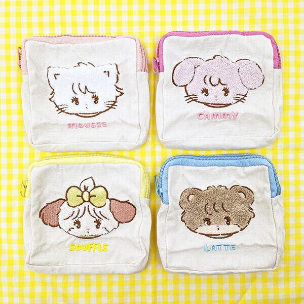 ミッコのもこもこ刺繍が可愛いポーチのコンプリートセットです。ミューズ、ラテ、キャミー、スフレの全4種。お友達と分け合うのもおすすめ♪リップや目薬などバッグの中で迷子になりやすい小物を収納するのにぴったりなサイズ感☆一気にコンプリートできちゃうのでミッコ好きにはたまりません♪