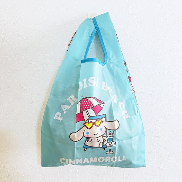 こんがり日焼けした姿がとってもキュートなシナモロールのエコバッグです。コンパクトに折りたためてバッグにインしておくと安心☆お買い物やサブバッグとして大活躍すること間違いなしです!ぜひサンリオの日焼けシリーズでこの暑い夏をともに過ごしませんか♪