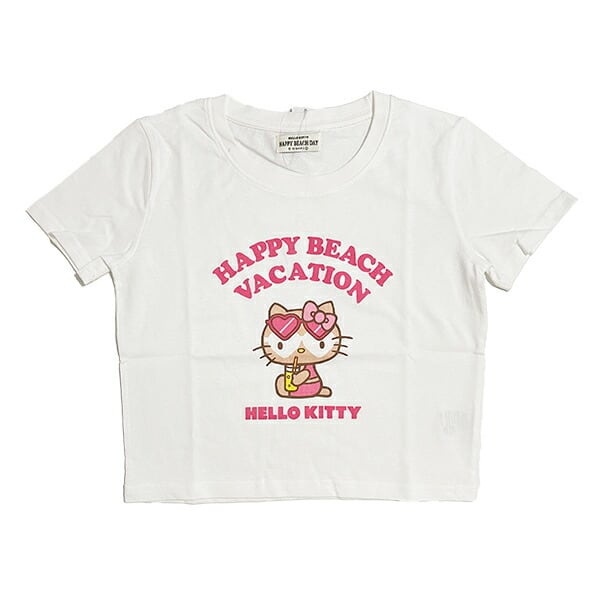 サンリオ 日焼け キティ クロップド半袖Tシャツ(S) ホワイト アパレル Sanrio