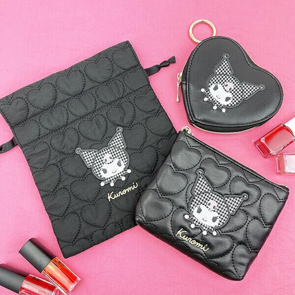クロミの巾着です♪モノトーンのハート柄キルティング生地が大人女子にピッタリ♪小物入れにも☆彡
