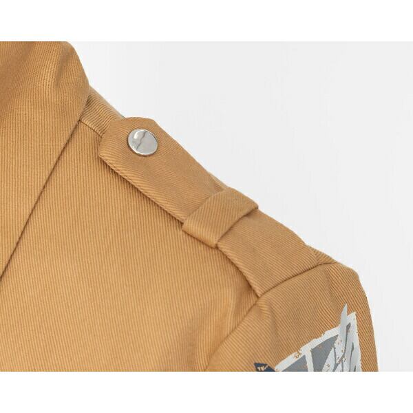 TVアニメ『進撃の巨人』のリヴァイが着ている“調査兵団”のコスチュームセットです!ブーツカバーはお手持ちの靴にかぶせてご使用いただく仕様です。ハロウィン、学園祭、新年会、忘年会様々なシーンで活躍間違いなし!?ハロウィン、学園祭、新年会、忘年会様々なシーンで活躍間違いなし!?【セット内容:ジャケット、リヴァイのシャツ、リヴァイのスカーフ、腰布、固定ベルト付きパンツ、ブーツカバー】【サイズ目安:身長:172〜180 チェスト:94〜104 ウエスト:80〜88 ヒップ:92〜98(cm)仕上がり寸法…ジャケット着丈:約43 パンツ脇丈:約103(cm) 】※ウィッグ、靴はセットに含まれません。プリント面にはアイロンをあてないでください。汚れた場合は、取り扱い絵表示に従い、洗濯してください。