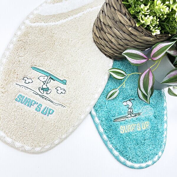 スヌーピーのサーフデザインが可愛いミニアクセントマットです。すべり止め付きで使い勝手◎サーフボード型がとってもキュート♪お部屋のインテリアにぴったり☆お揃いのデザインのスリッパと合わせて使うのがおすすめ!!丸洗いOKなので衛生的で安心して普段使いできちゃいます♪ぜひ可愛いスヌーピーと一緒におうち時間をお楽しみください☆彡