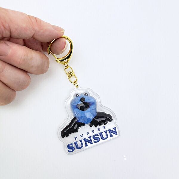 立体感がすごい!ぷっくりしていて透け感が可愛いパペットスンスンのキーホルダーです。「パペットスンスン」の主人公スンスンは、パペットの国〈トゥーホック〉に住んでいる6才の男の子です。パッと見は柔らかそうに見えますが、しっかりしたキーホルダー☆カラビナのカラーリングがとってもおしゃれ♪夏にぴったりなデザインなのでぜひお気に入りのバッグやリュックに付けてお出かけしませんか♪