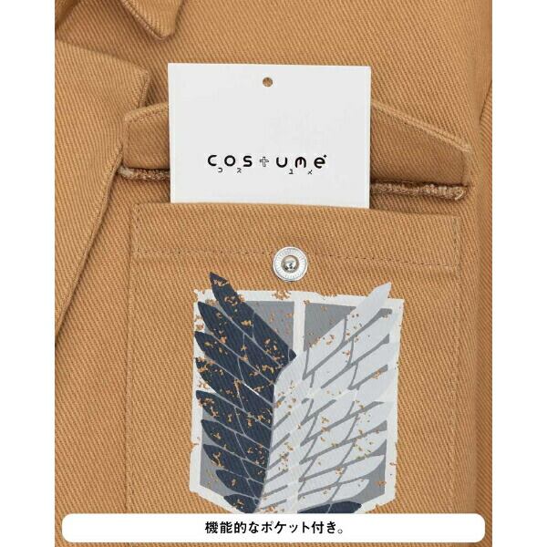 TVアニメ『進撃の巨人』のリヴァイが着ている“調査兵団”のコスチュームセットです!ブーツカバーはお手持ちの靴にかぶせてご使用いただく仕様です。ハロウィン、学園祭、新年会、忘年会様々なシーンで活躍間違いなし!?ハロウィン、学園祭、新年会、忘年会様々なシーンで活躍間違いなし!?【セット内容:ジャケット、リヴァイのシャツ、リヴァイのスカーフ、腰布、固定ベルト付きパンツ、ブーツカバー】【サイズ目安:身長:167〜175 チェスト:88〜96 ウエスト:76〜84 ヒップ:86〜92(cm)仕上がり寸法…ジャケット着丈:約40 パンツ脇丈:約100(cm) 】※ウィッグ、靴はセットに含まれません。プリント面にはアイロンをあてないでください。汚れた場合は、取り扱い絵表示に従い、洗濯してください。