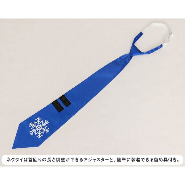 「雪ミク」の公式コスチュームです!!オフィシャル監修の元、光沢感のあるサテン生地を使用。細部に施された模様は全てプリントで表現。ジャケットは設定にあわせ、身体にフィットした形を表現する為、ウエスト部分をシェイプして作製。ハロウィン、学園祭、新年会、忘年会様々なシーンで活躍間違いなし!?【セット内容:ジャケット、スカート、ネクタイ、アームカバー、ブーツカバー、ヘッドセット、髪飾り、マフラー、手袋】【サイズ目安: 身長:158〜164 バスト:84〜92 ウエスト:68〜74ヒップ:92〜98(cm)仕上がり寸法…ジャケット着丈:約49 スカート着丈:約41(cm) 】※ウィッグ、パニエ、靴はセットに含まれません。汚れた場合は、取り扱い絵表示に従い、洗濯してください。濡れたままの放置や、漂白剤及び漂白剤入りの洗剤を使用すると、変色する場合がございますので避けてください。色落ちや色移りする場合がございますので、他の製品とは分けて洗濯してください。水濡れや着用時の摩擦などにより、色落ちや色移りする可能性がありますので、十分ご注意ください。強く引っ張ったりこすったりすると、縫い目がほつれたりプリント部分が割れる場合がありますので、避けてください。本商品は仮装用の衣装です。着用時の運動は事故の原因になりますので、ご注意ください。ヘッドセットにワイヤーを使用しています。ワイヤー部分を必要以上に折り曲げたりしますと破損する恐れがありますので、ご注意下さい。また、装着時は転倒、衝撃などによる事故に十分ご注意ください。パッケージの写真・イラストと商品は若干異なる場合がございますので、ご了承ください。