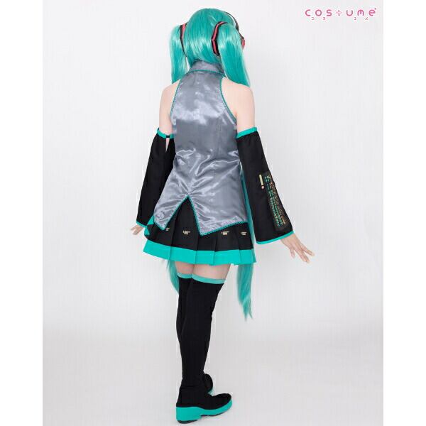 ポップでキュートなバーチャルシンガー『初音ミク』の公式コスチューム!オフィシャル監修の元、光沢感のあるサテン生地を使用。細部に施された模様は全てプリントで表現。ジャケットは設定にあわせ、身体にフィットした形を表現する為、ウエスト部分をシェイプして作製。ハロウィン、学園祭、新年会、忘年会様々なシーンで活躍間違いなし!?【セット内容:ジャケット、スカート、ヘッドセット、髪飾り、ネクタイ、アームカバー、ブーツカバー】【サイズ目安: 身長:158〜164 バスト:84〜92 ウエスト:68〜74ヒップ:92〜98(cm)仕上がり寸法…ジャケット着丈:約49.5 スカート着丈:約41(cm) 】※汚れた場合は、取り扱い絵表示に従い、洗濯してください。濡れたままの放置や、漂白剤及び漂白剤入りの洗剤を使用すると、変色する場合がございますので避けてください。色落ちや色移りする場合がございますので、他の製品とは分けて洗濯してください。水濡れや着用時の摩擦などにより、色落ちや色移りする可能性がありますので、十分ご注意ください。強く引っ張ったりこすったりすると、縫い目がほつれたりプリント部分が割れる場合がありますので、避けてください。本商品は仮装用の衣装です。着用時の運動は事故の原因になりますので、ご注意ください。ヘッドセットにワイヤーを使用しています。ワイヤー部分を必要以上に折り曲げたりしますと破損する恐れがありますので、ご注意下さい。また、装着時は転倒、衝撃などによる事故に十分ご注意ください。パッケージの写真・イラストと商品は若干異なる場合がございますので、ご了承ください。