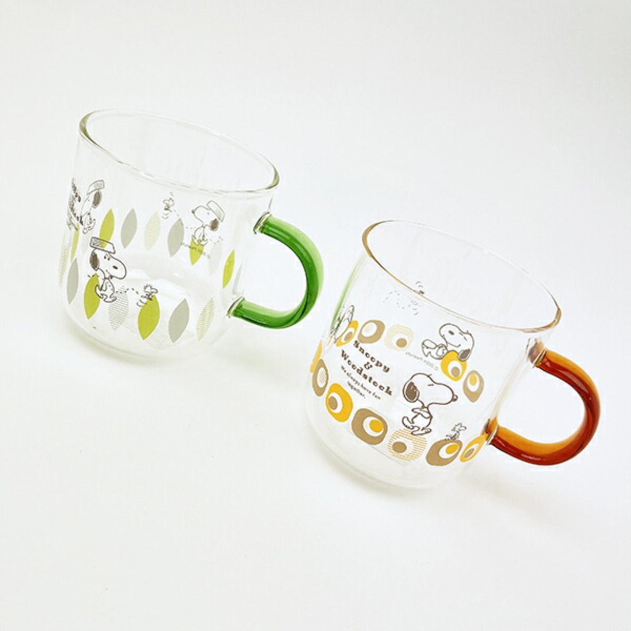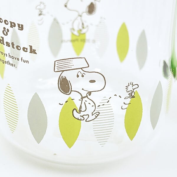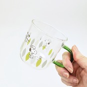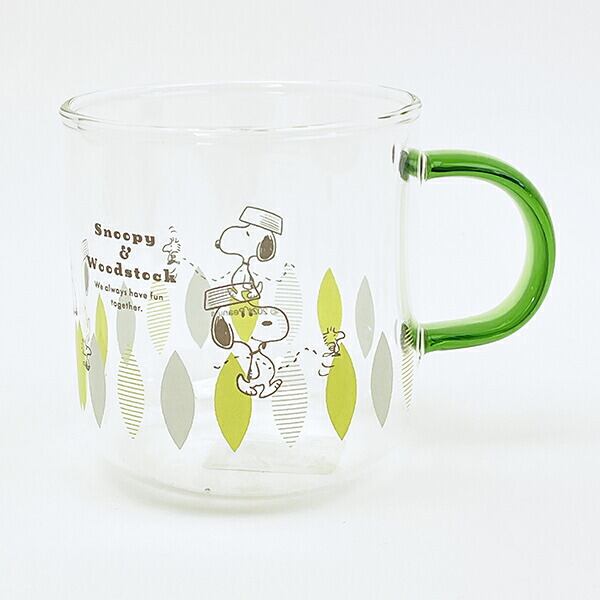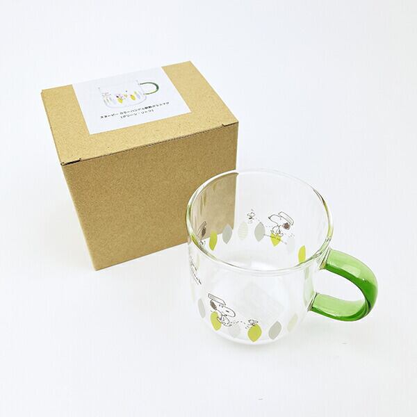 スヌーピー グリーン・リーフ カラーハンドル耐熱ガラスマグカップ コップ 日本製 SNOOPY