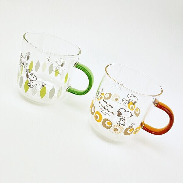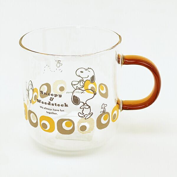 スヌーピー ブラウン・キューブ カラーハンドル耐熱ガラスマグカップ コップ 日本製 SNOOPY