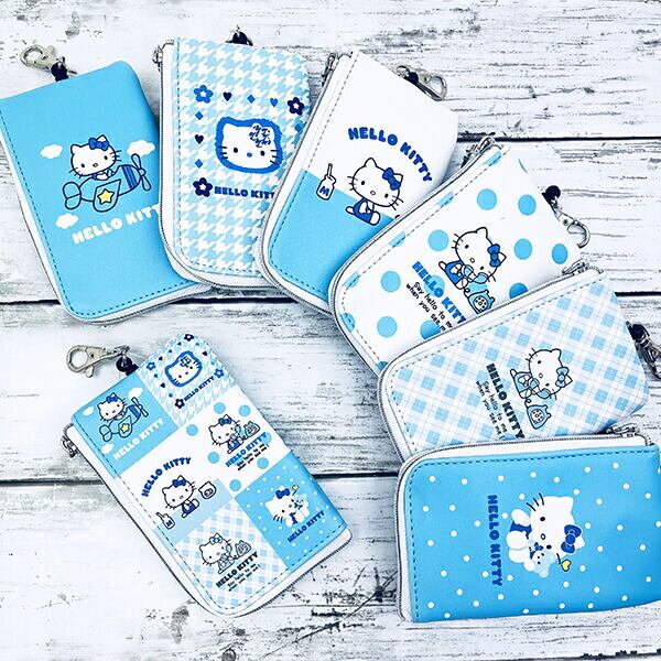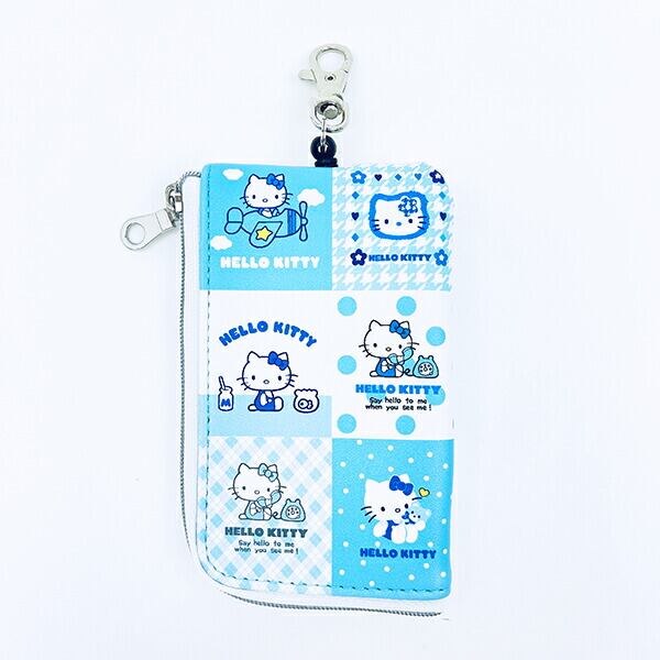 珍しい水色のカラーのハローキティのキー&パスポーチです♪中にキーリングが付いていて鍵など付けられる◎裏側にはカードポケット付き。キーホルダー部分が伸びるのでカバンに付けたまま使える便利アイテム◎